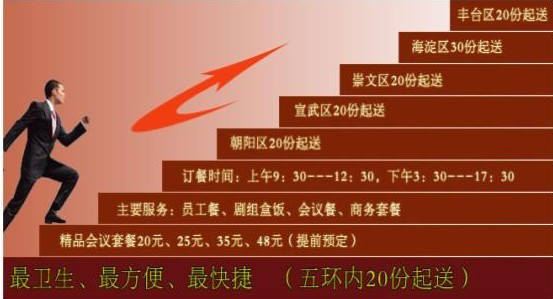快餐配送服務區(qū)域:朝陽、海淀、東城、西城、崇文、宣武、豐臺、石景山、昌平、通州、大興、懷柔、覆蓋各個區(qū)域,門頭溝區(qū)和密云除外,服務于廣大客戶,配送時間五環(huán)內均在半小時之內,五環(huán)外均在1個小時之內,保證各個區(qū)域的客戶都能享受到京朝軒快餐的優(yōu)質服務。30份以上起送。