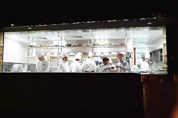 開放式廚房可見廚師們正在忙碌地準(zhǔn)備美食。